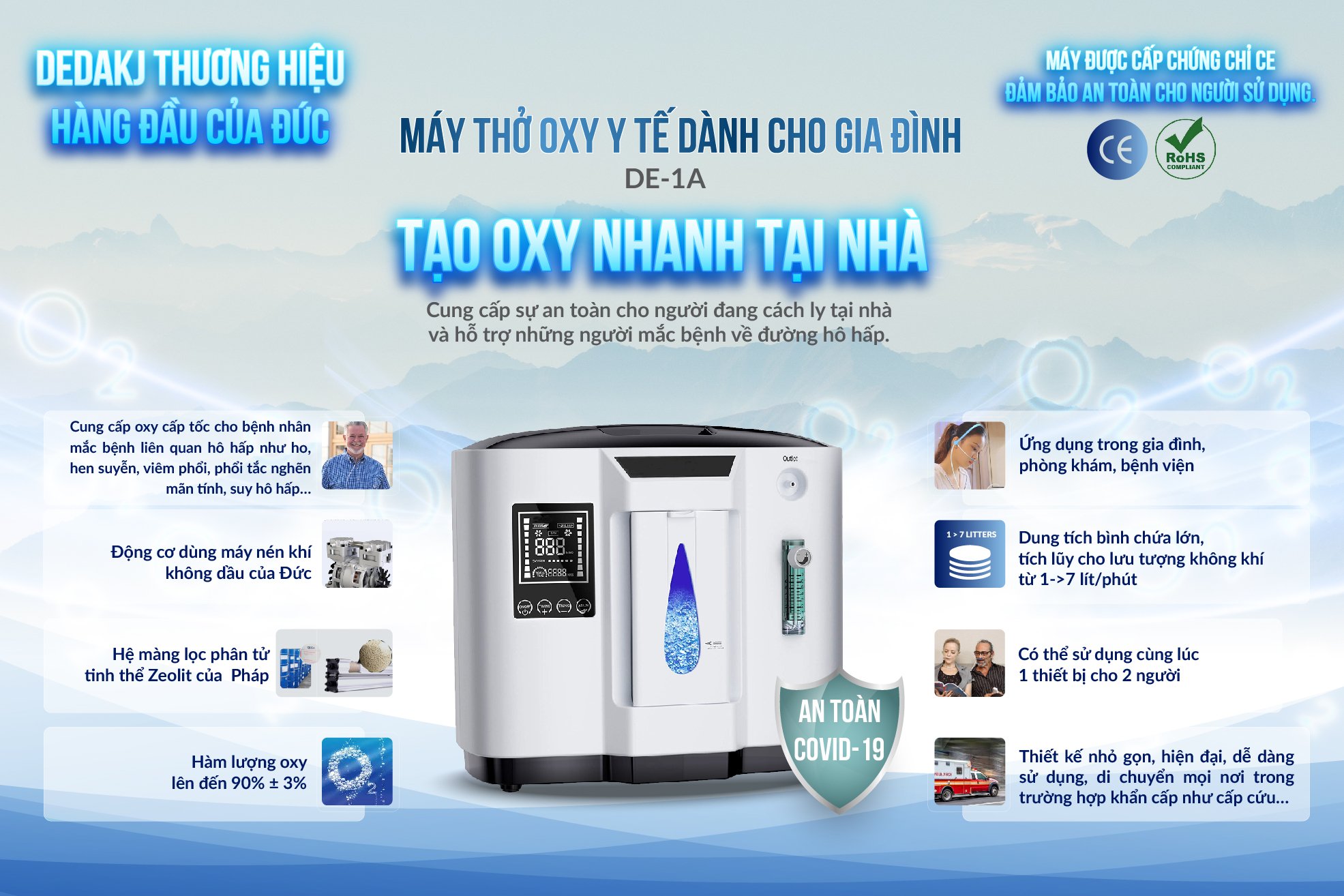 Máy tạo oxy DEDAKJ DE-1A là giải pháp cung cấp oxy hiệu quả tối ưu hàng đầu hiện nay, thiết bị được nhiều bác sỹ chuyên khoa khuyên dùng.