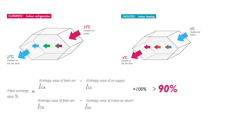 - Hiệu suất lõi trao đổi nhiệt có thể trên 96%