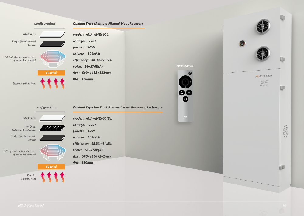 MIA có hơn 10 năm kinh nghiệm sản xuất các sản phẩm thông gió và sản xuất ERV (thiết bị thông gió khôi phục năng lượng), được phát triển bởi đội ngũ R&D của Nhật Bản. Các sản phẩm hiệu quả cao đến 96%.