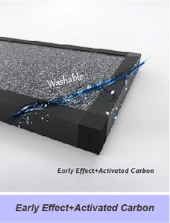 Bộ lọc bằng sợi composite, được phun bột than hoạt tính, có thể lọc các hạt ống dẫn một cách hiệu quả và sức cản gió rất nhỏ. Năng lượng than hoạt tính được phân bố đồng đều có thể phát huy tối đa vai trò của than hoạt tính. Bộ lọc này có thể giặt và có thể được sử dụng nhiều lần, giúp giảm đáng kể tổng chi phí vật tư tiêu hao.