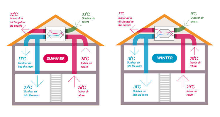 - Bộ thu hồi nhiệt vật liệu PSY: được phát triển bởi nhóm DR Nhật Bản, có hiệu suất thu hồi nhiệt cao. Có thể xâm nhập vào phân tử nước trong quá trình trao đổi nhiệt; Với chất liệu có thể vệ sinh (giặt) được nên tránh được vấn đề sản sinh vi khuẩn và nấm mốc.